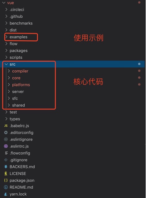 Vue.js 的源码的核心部分都在 src 目录下,其目录结构如下:
