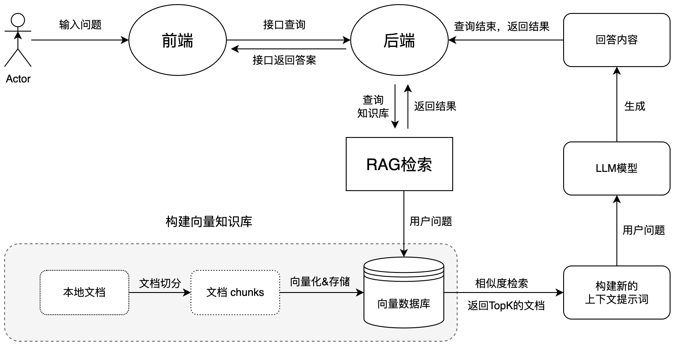 该AI助手的后端技术方案是基于RAG,通过用户输入的问题,从知识库中提取相关信息,然后生成对应的回答。关于RAG的理论学习我已经梳理在RAG学习笔记-理论篇中,这里就不重复介绍了。