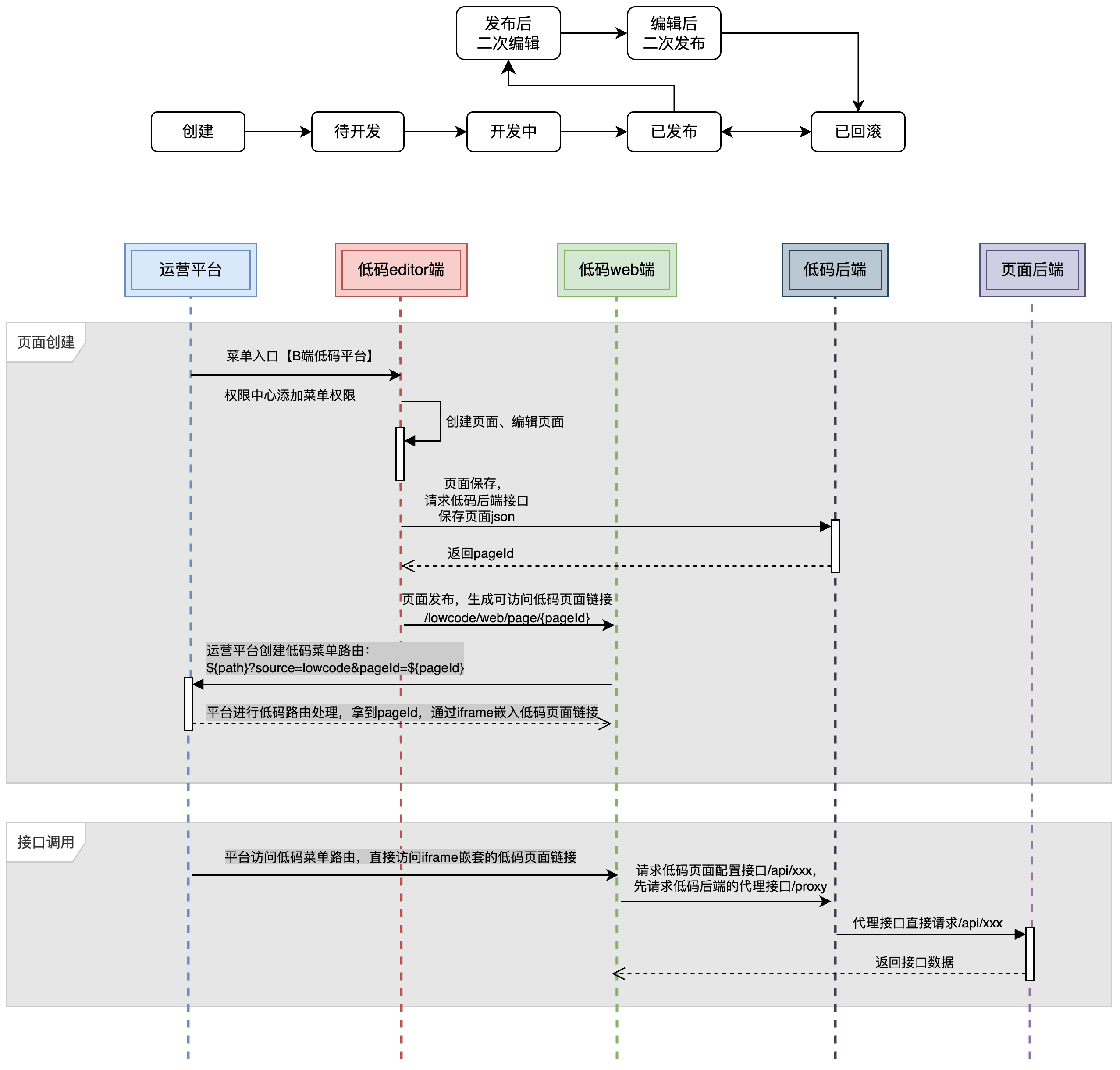 - Server端接口开发:需要快速设计一套满足低码页面创建编辑的接口,包括页面的创建、编辑、保存、发布等操作。