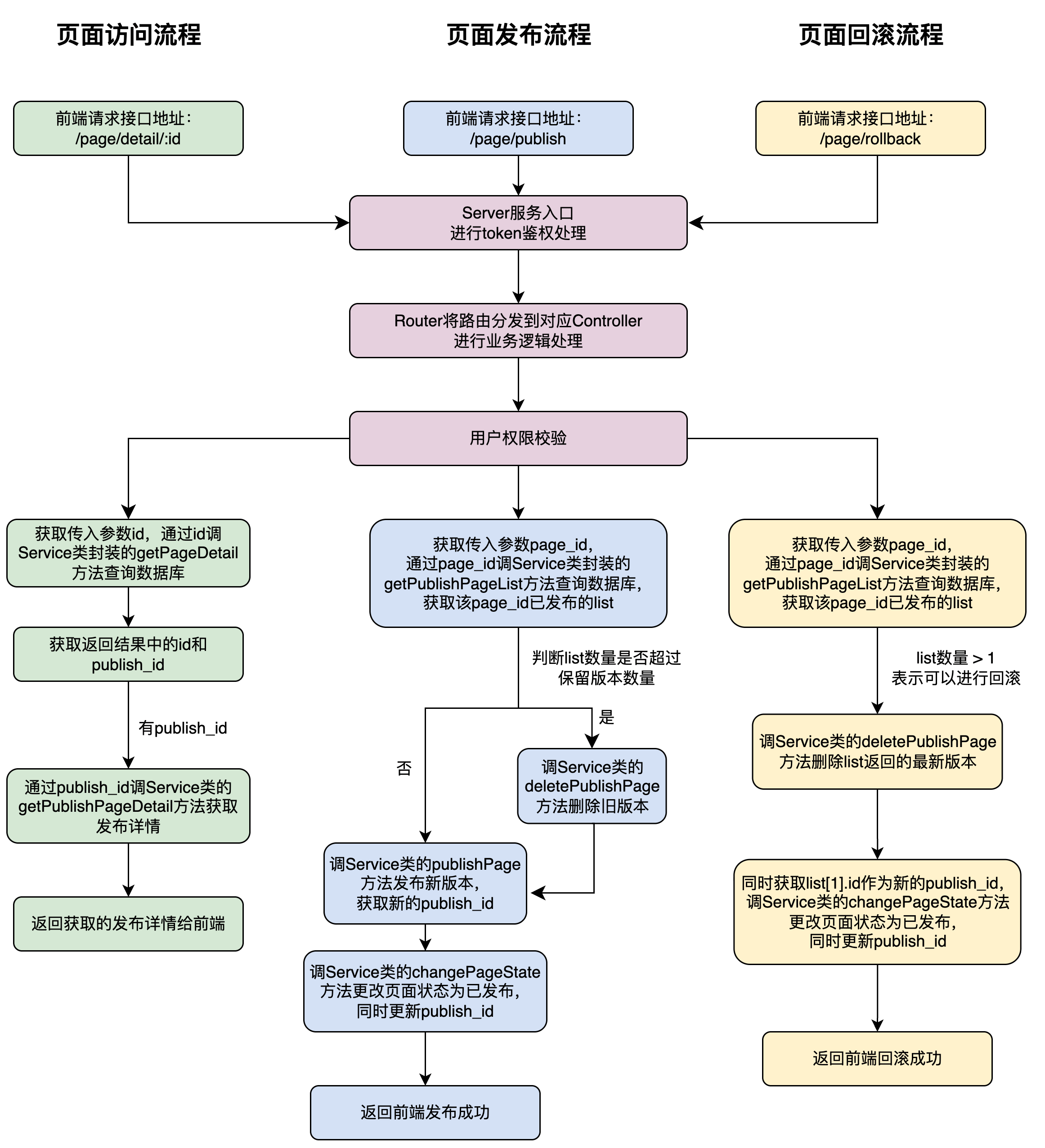 /page/rollback来实现回滚到上一个已发布版本,同时更新publish_id等信息。页面的版本控制一般是基于同一个版本的渲染引擎,每次修改后再发布都会生成新的publish_id。