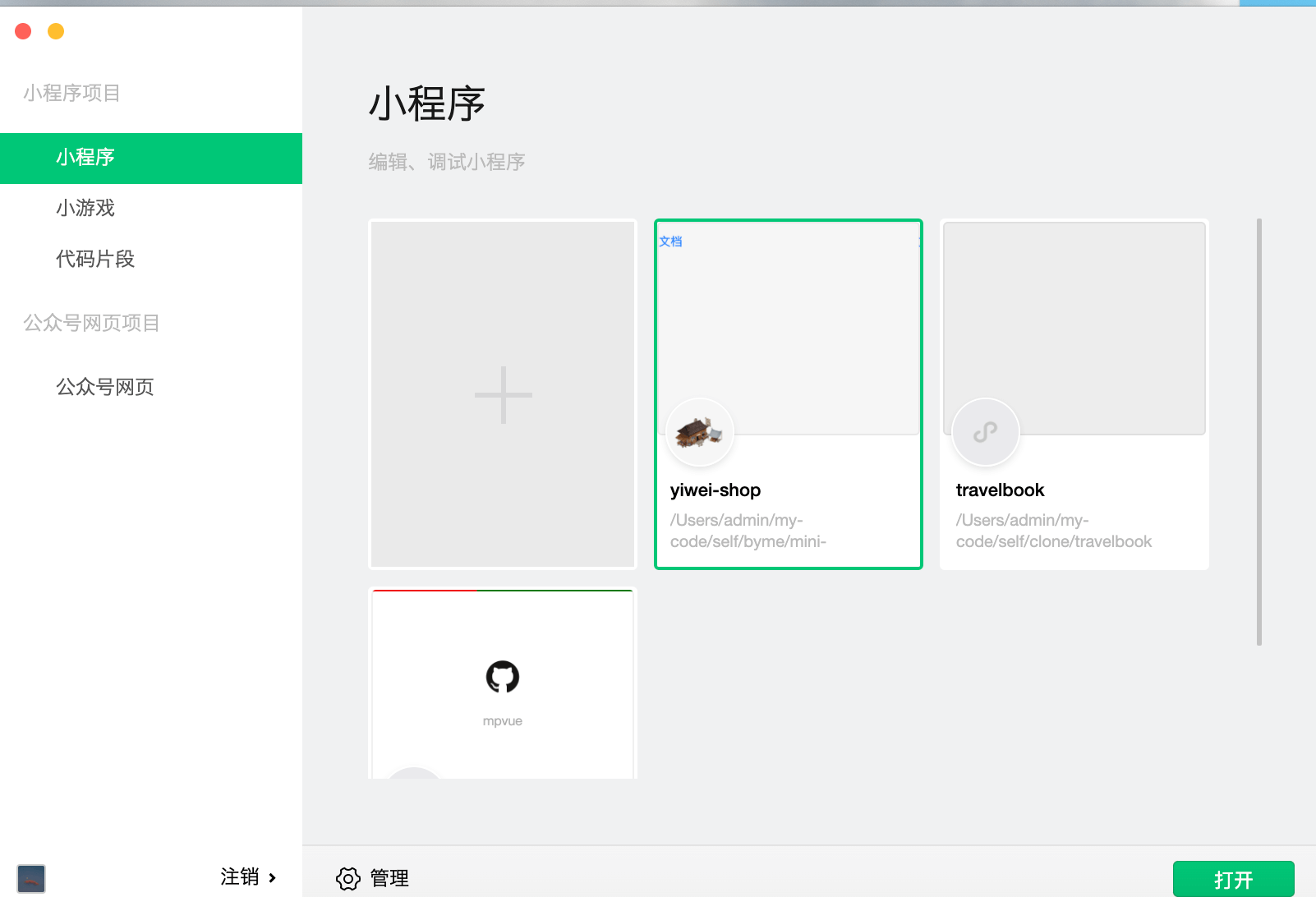 +号,新建一个小程序,进入如下界面: