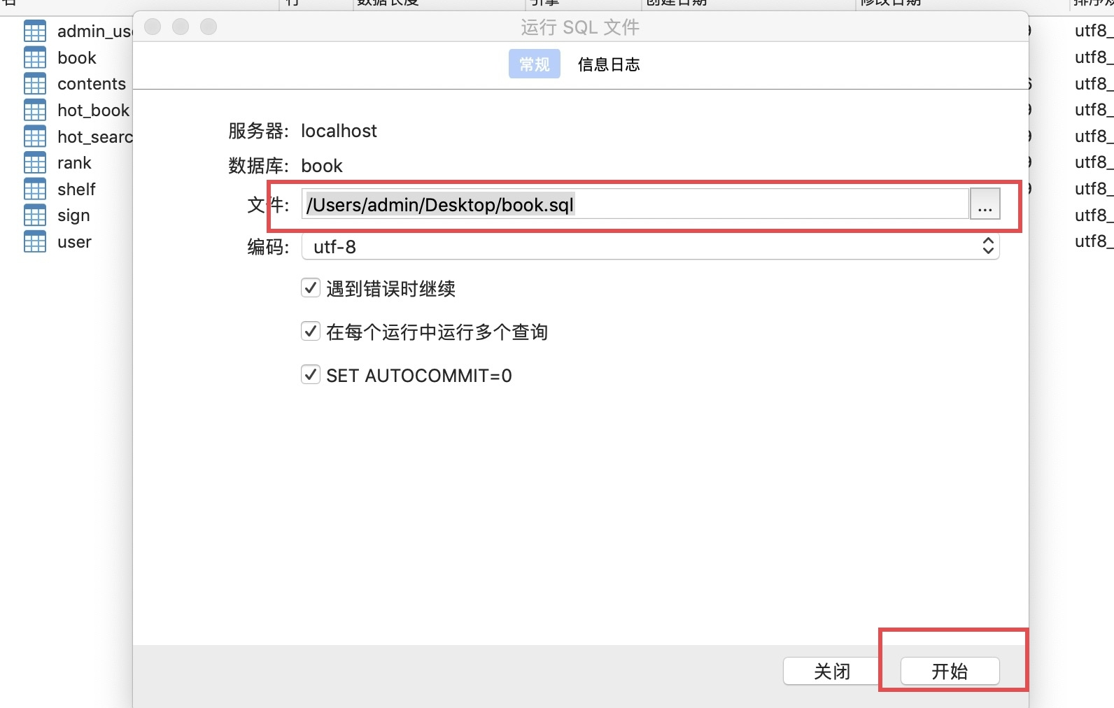 book > 运行SQL文件,选择book.sql文件进入导入: