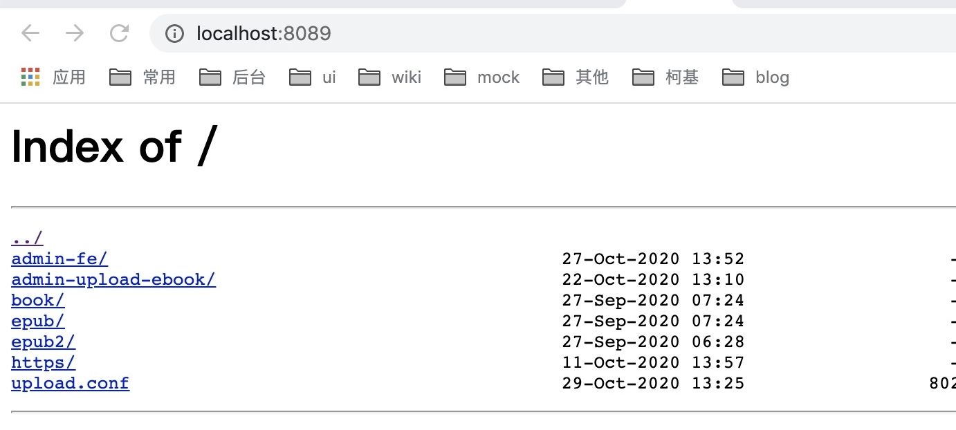 http://localhost:8089则能访问到我们自己配置的位于/Users/admin/upload/下的资源: