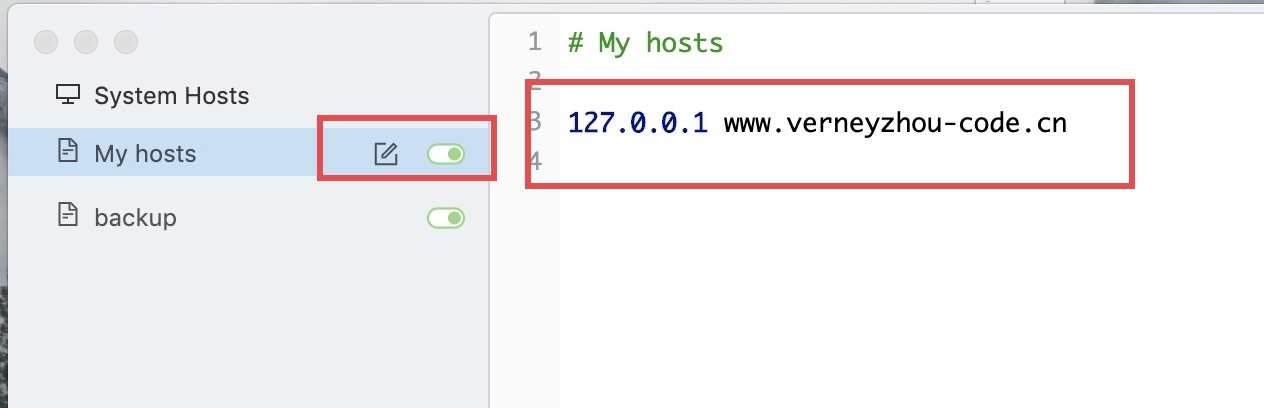 switchHosts将 本地ip代理到配置文件中ssl证书对应的域名: