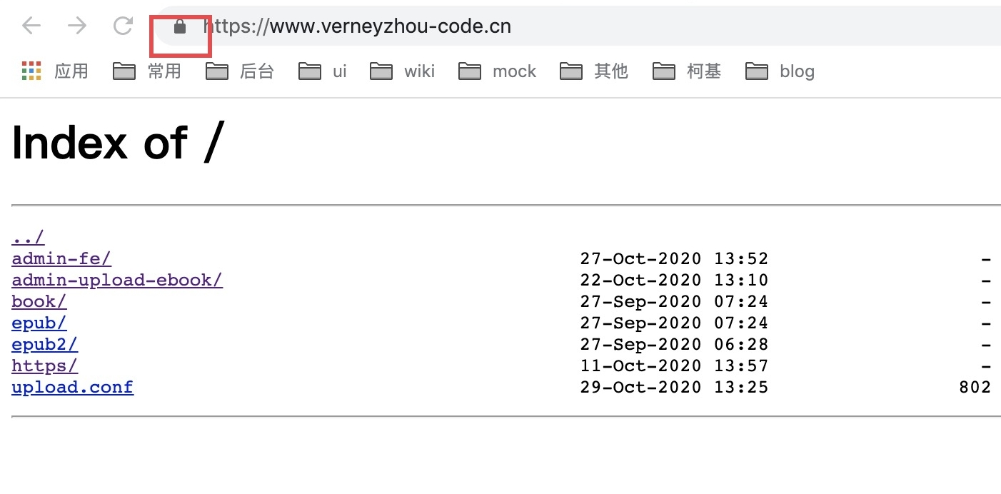现在在浏览器输入:https://www.verneyzhou-code.cn/ 就可以访问到本地 /Users/admin/upload/ 下的资源:
