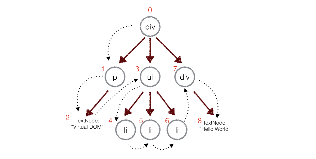 tagName: 'li', props: { class: 'item' }, children: ['3333']