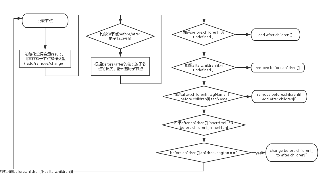 传统的Diff算法通过循环递归对节点进行比较,然后判断每个节点的状态以及要做的操作(add,remove,change),最后 根据Virtual DOM进行DOM的渲染。大体流程如下图 (opens new window):