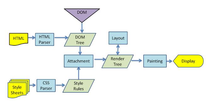 - 创建StyleRules:用 CSS 分析器,分析 CSS 文件和元素上的 inline 样式,生成页面的样式表;