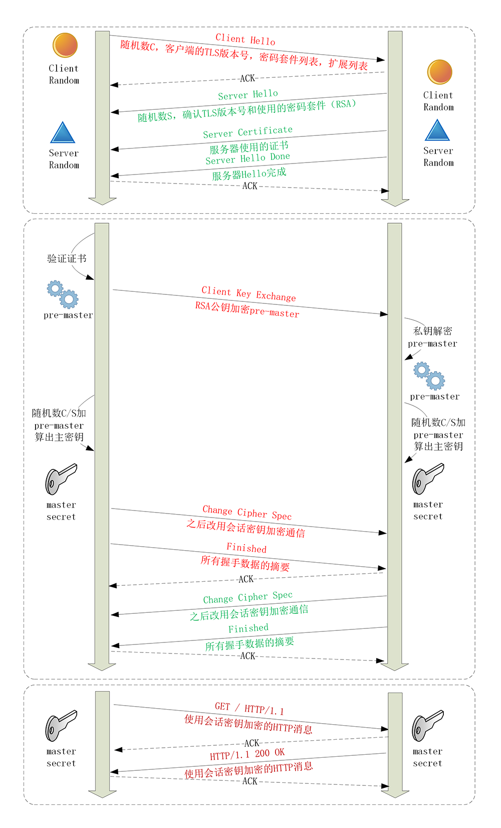 - 非对称加密解密处理“Pre-Master”。