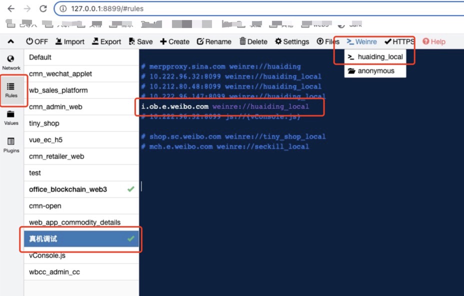 i.ob.e.weibo.com也就可以访问到本地项目,同时也能在Whistle中抓到网络请求~