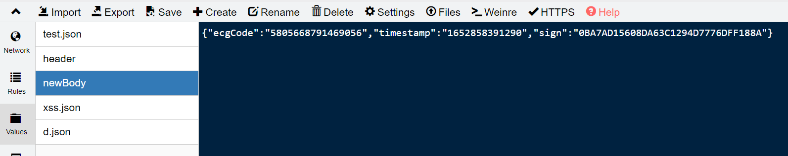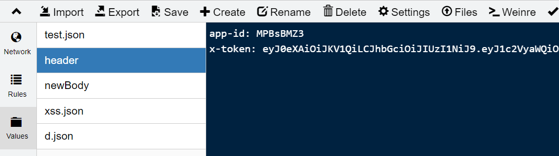 http://网址 reqHeaders://{values中存放该接口返回的文件名+文件后缀}: - 修改请求体,则