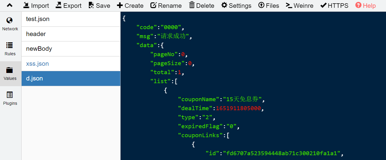 http://网址 reqBody://{values中存放该接口返回的文件名+文件后缀}: - 修改响应体,则