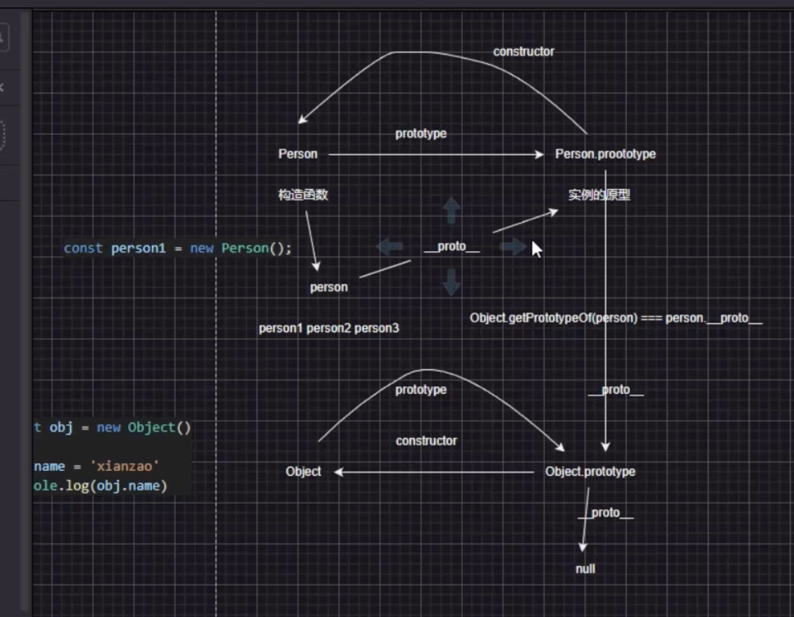 Person.prototype中,实际上,它是来自于Object.prototype,与其说是一个属性,不如说是一个getter/setter,当使用obj.__proto__时,可以理解成返回了Object.getPrototypeOf(obj)。