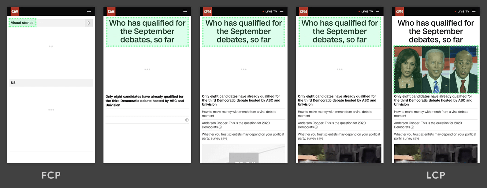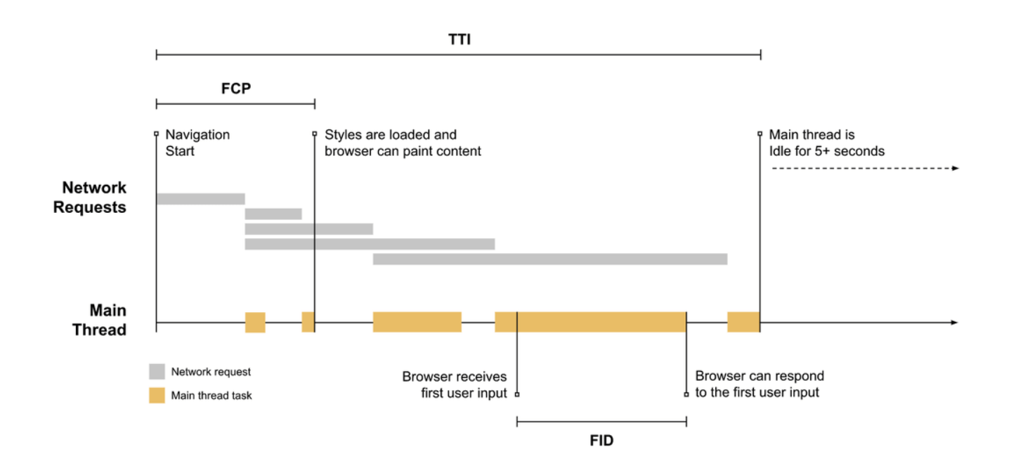 首次绘制(FP)和首次内容绘制(FCP)。在浏览器导航并渲染出像素点后,这些性能指标点立即被标记。 这些点对于用户而言十分重要,直乎感官体验!