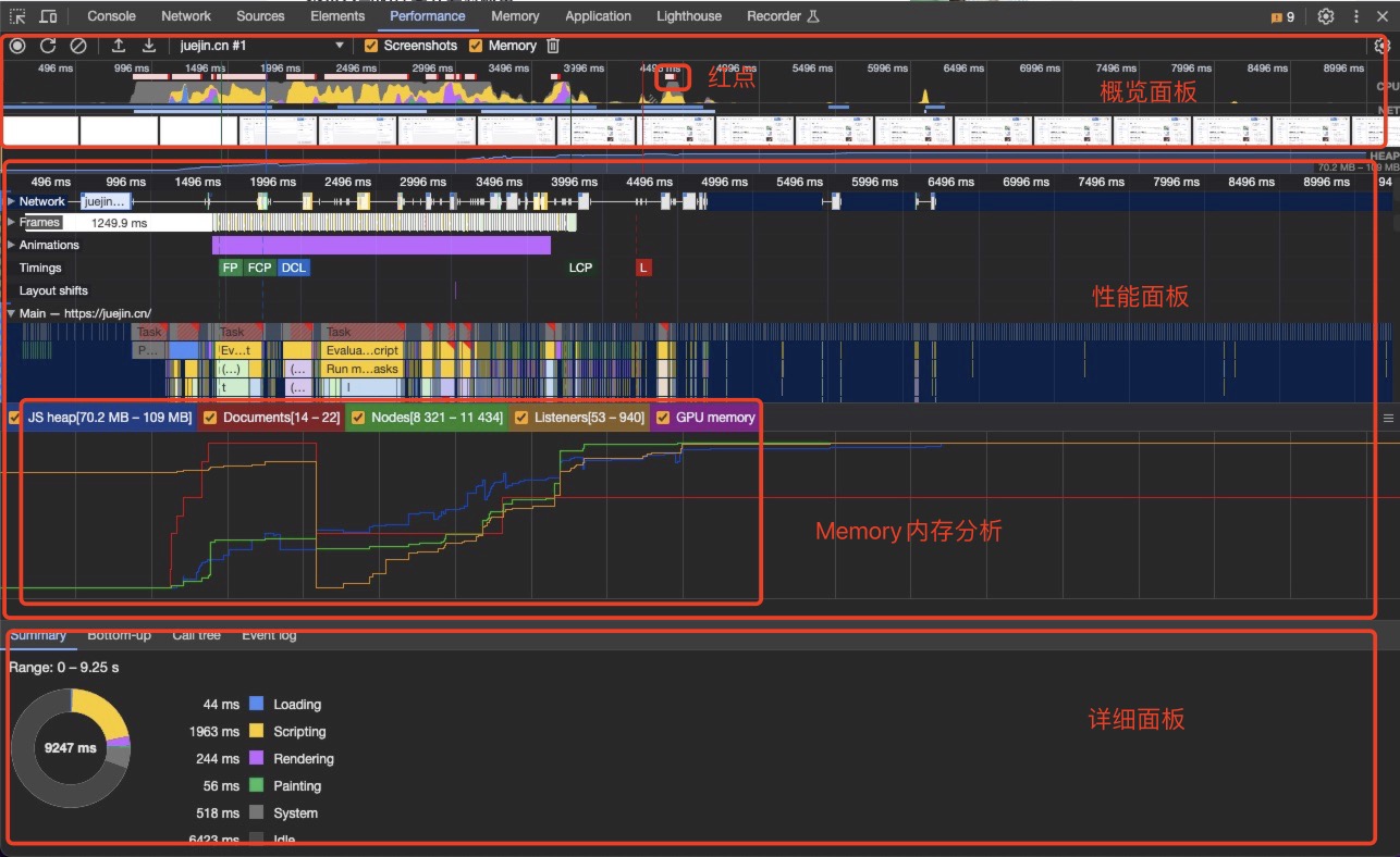 performance.timing可以获取网页运行过程中每个时间点对应的时间戳(绝对时间,ms),但却即将废弃performance.getEntries(),以对象数组的方式返回所有资源的数据,包括css,img,script,xmlhttprequest,link等等performance.getEntriesByType(type:string),和上面的 getEntries 方法类似,不过是多了一层类型的筛选,常见性能类型可以有 **navigation(页面导航)、resource(资源加载)、paint(绘制指标)**等