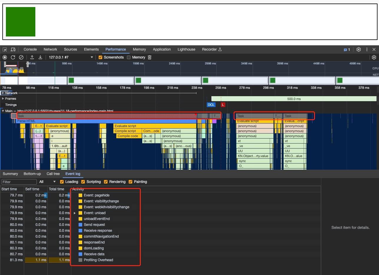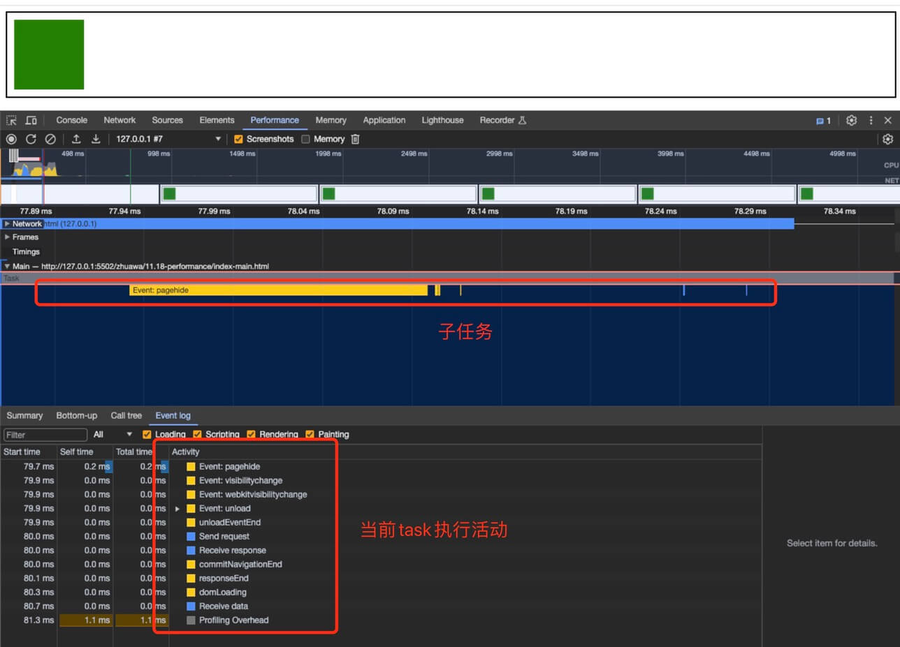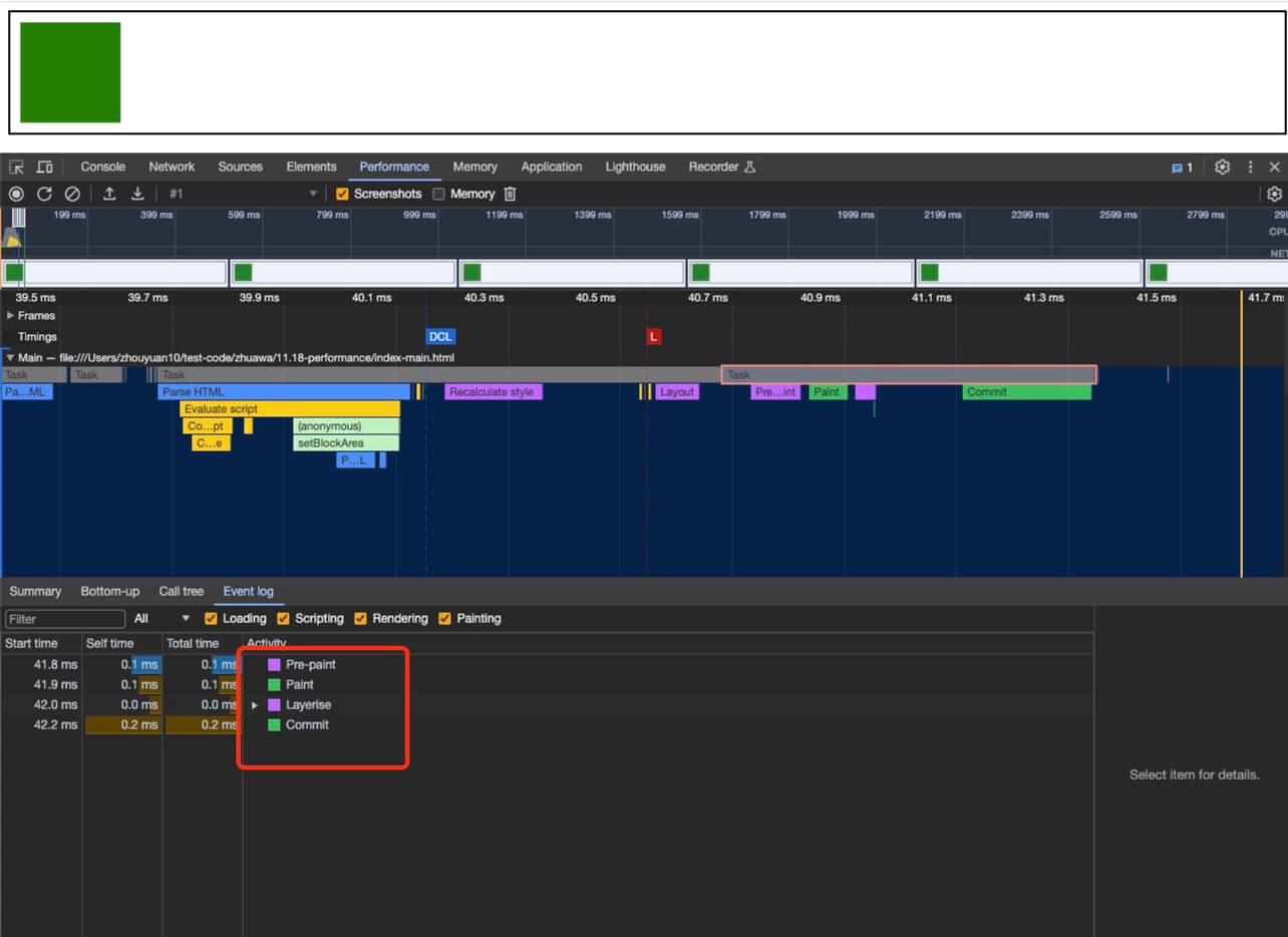 | paint | 页面加载时内容渲染的关键时刻(第一次绘制,第一次有内容的绘制,实例项是 PerformancePaintTiming 对象。 |